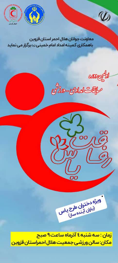 معاون جوانان جمعیت هلال احمر استان قزوین از برگزاری اولین دوره مسابقات امدادی ـ ورزشی "رفاقت یاس" ویژه دختران طرح یاس (یاران آسیب‌ستیز)، خبر داد.